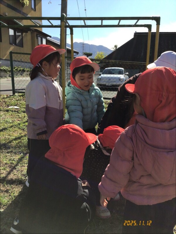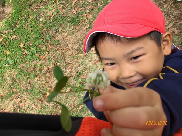 幼稚園にはない遊具でお友だちと一緒に遊んだり、秋のお花を見つけたり、拾ったりして遊びました😊