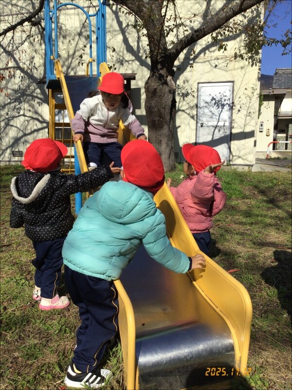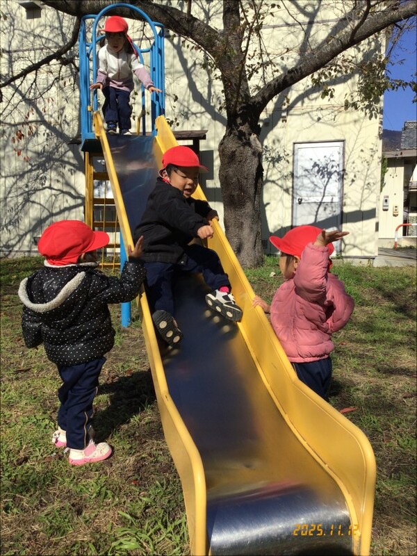 その後はいつものように、滑り台をしたりかくれんぼやかごめかごめをして遊びました。