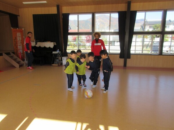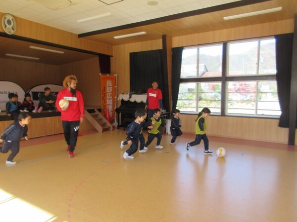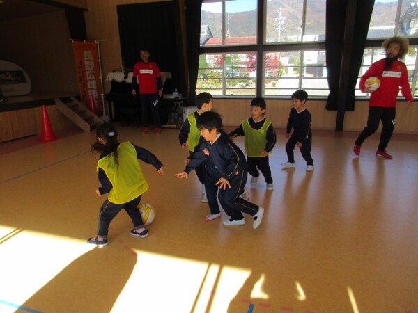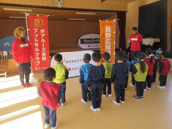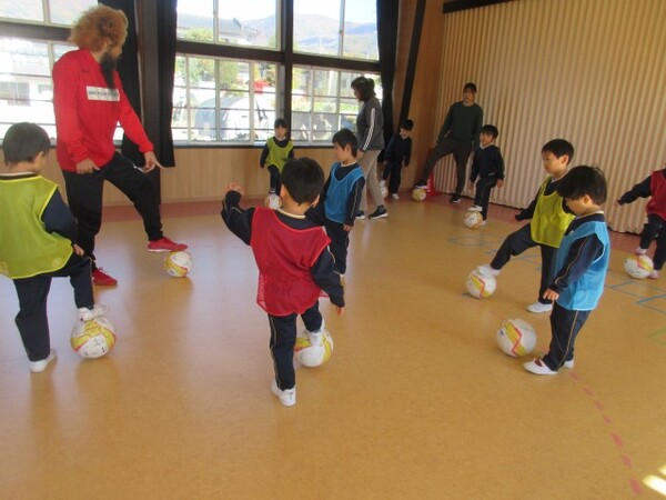 11月12日に【ボアルース長野フットサルクラブ】の方が来て下さり、年中・年長クラスでフットサルを教えていただきました。