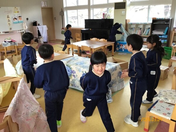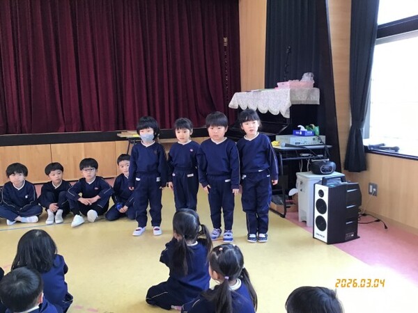 3月6日に年長さんとのお別れ会を行いました。今まで沢山遊んでくれて、園を引っ張っていってくれたゆり組さんに「ありがとう」の気持ちを込めて年中さくら組が計画を立てました。