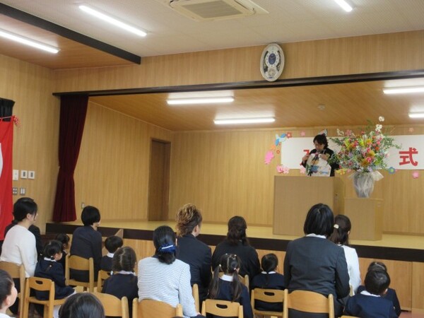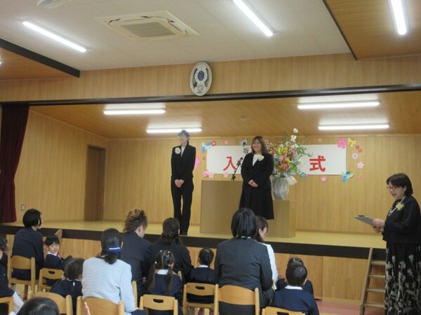 少し大きい制服に身を包みながらドキドキした表情の新入園児のお友だちでしたが、在園児のお兄さん・お姉さんに拍手で迎えられて泣く子もいなく、お家の方と一緒に式に参加できてとっても頑張りました✨