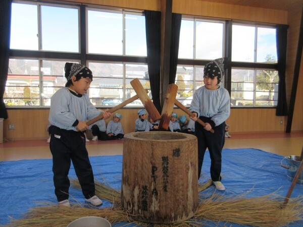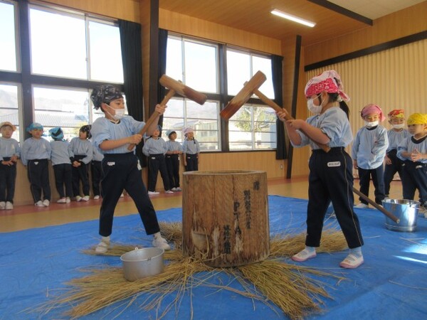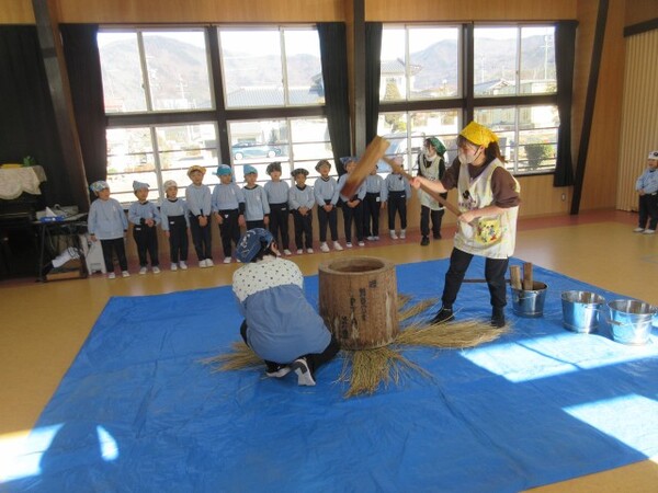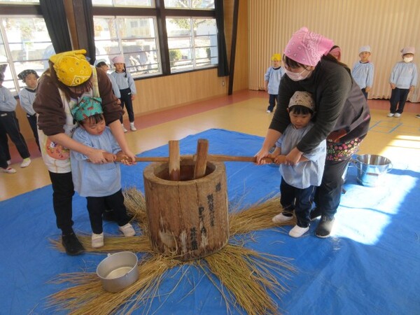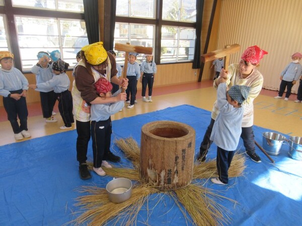 臼と杵を使っての餅つき。ここ最近ではなかなか経験できないものかもしれませんが、自分たちでお餅をついて味わったりとても楽しい時間になったようでよかったです😊