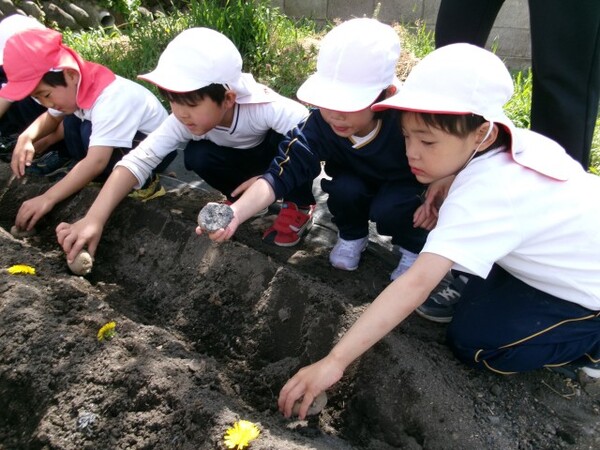 年長組では、インゲン豆・ジャガイモ・ナスを植えることにしました🥔🍆