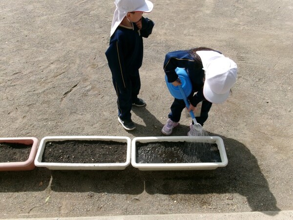 みんなで交代で水くれ当番もやっていきます。おおきく生長する様子も観察しながら食べられる日を楽しみにしたいと思います😊♬
