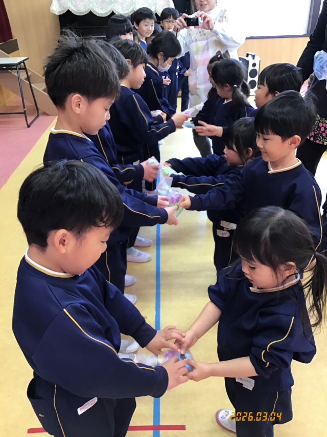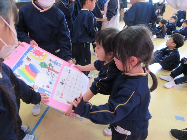 各クラスごとに用意したプレゼント交換もして「ゆりぐみさん、小学校に行ってもがんばってね」と感謝の気持ちを伝えました。